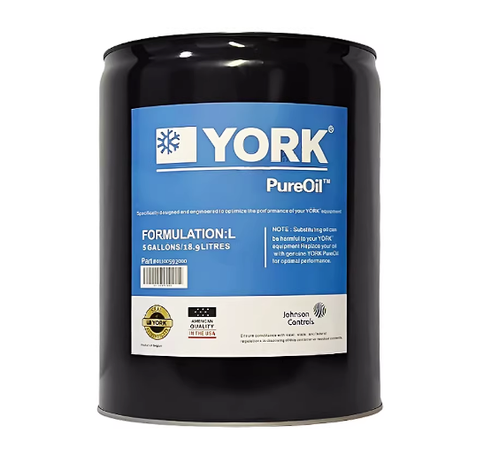 | York L 油(Formulation:L) | POE 多元醇酯合成油 | R134a、R407C、R410A | 约克螺杆机组(YS/YC/YZ 系列)、商用中央空调 | 5 加仑 |